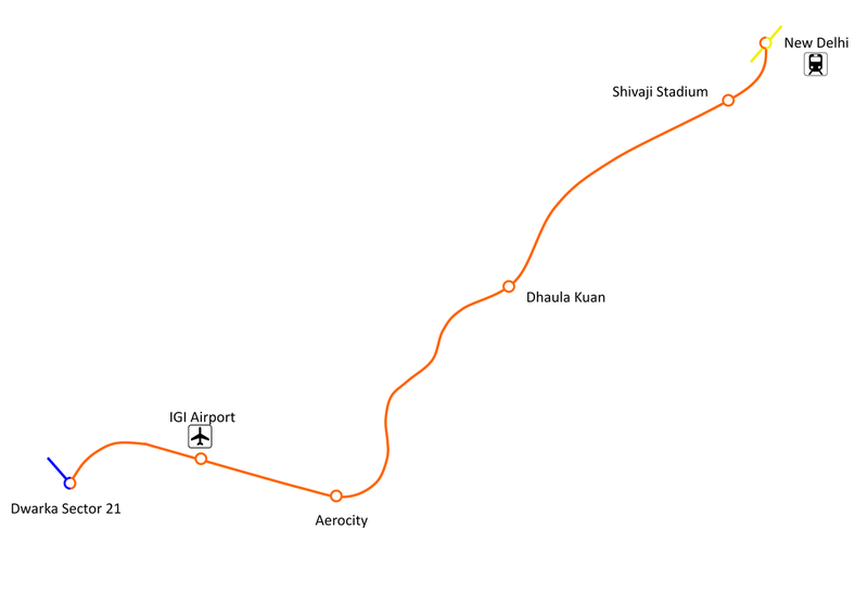 | स्टेशन | नई दिल्ली | शिवाजी स्टेडियम | धौला कुआँ | दिल्ली एयरोसिटी | आईजीआई एयरपोर्ट | द्वारका सेक्टर 21 |